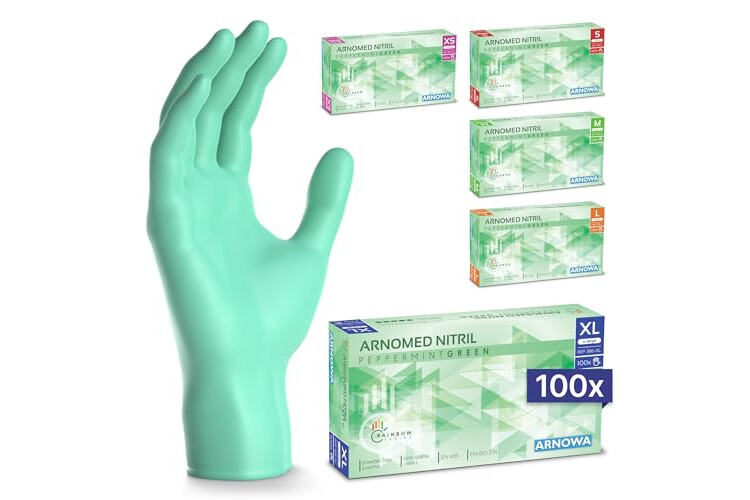100x ARNOMED® Guantes nitrilo talla XL Verde, Guantes desechables quirurgicos y laboratorio, Luvas nitrilo descartaveis sin polvo y látex, Manoplas nitrilo en XS, S, M, L, XL, XXL