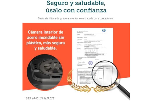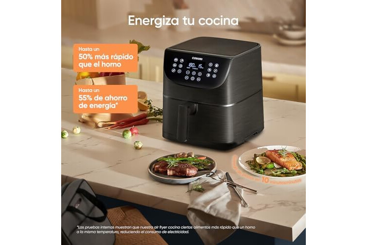 | Características especiales | Cesta grande de 5,5 l, 13 programas preestablecidos, 50% más rápido y 55% ahorro de energía, recetario español, tecnología circ |