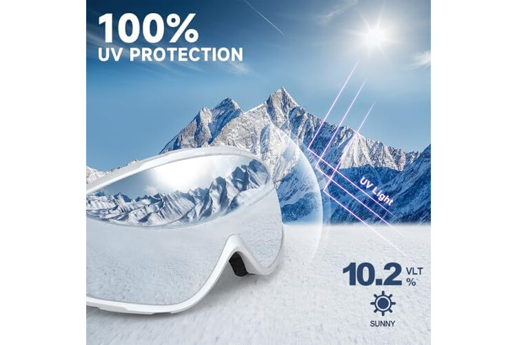 【Versión Actualización 2025】 Mejor rendimiento anti niebla de larga duración, mejor rendimiento anti-arañazos, 100% de protección UV, mejor casco compatible con correa antideslizante, diseño grande OTG (sobre las gafas), lente esférica proporciona una vista clara y sin obstrucciones de las pendientes.