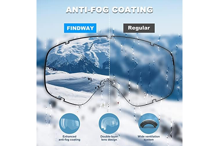 Findway Gafas de Esquí, Máscara Gafas Esqui Snowboard Nieve Espejo para Hombre Mujer Adultos Juventud Jóvenes OTG Compatible con Casco,Anti Niebla 100% Protección UV Gafas de Ventisca
