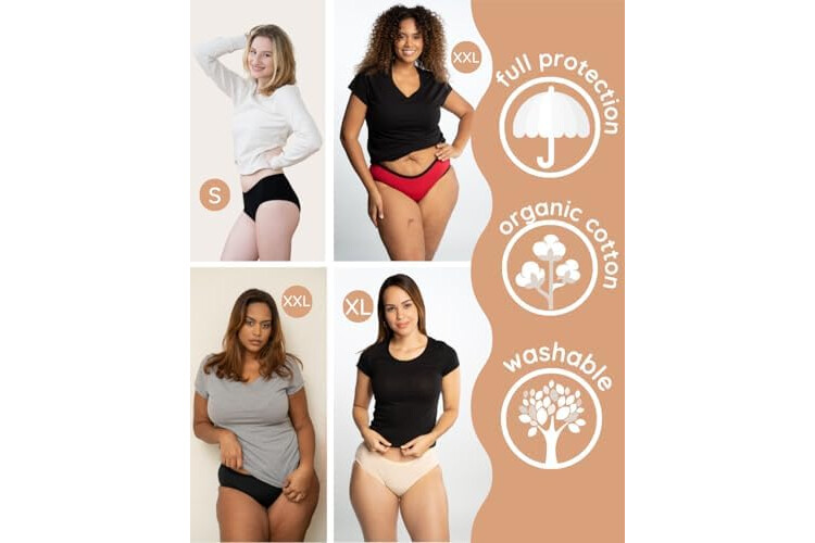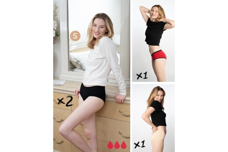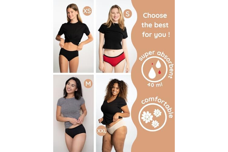 Bragas Menstruales absorbentes = 2 tampones - Lavables - Algodón - Ecológicas - Menstruación - Bragas de reglas Flujo Periódico de moderado a abundante - Incontinencia - Protección de Fugas de Orina