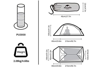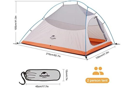 Marco mejorado: la tienda de campaña mejorada Naturehike Cloud-Up adopta una estructura doble en forma de Y, y el diseño de la cuerda de viento fija en el medio mejora su estabilidad.