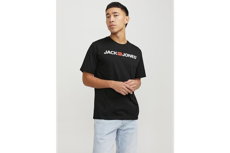 JACK & JONES Jjecorp Logo tee SS Crew Neck Noos, Camiseta Hombre, Negro (Black Detail: Slim Fit), Medium