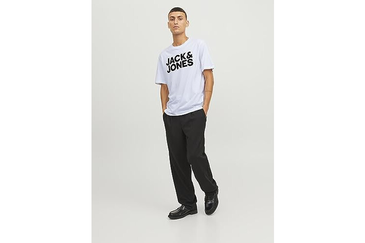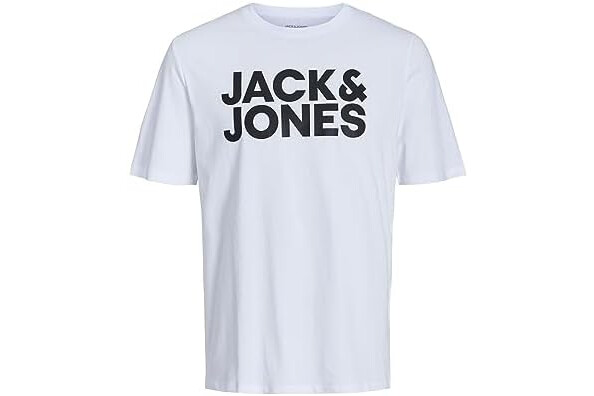 JACK & JONES Jjecorp Logo Tee Ss O-neck Noos Camiseta Cuello Redondo, White/Fit Slim Large Print Black, M Hombre