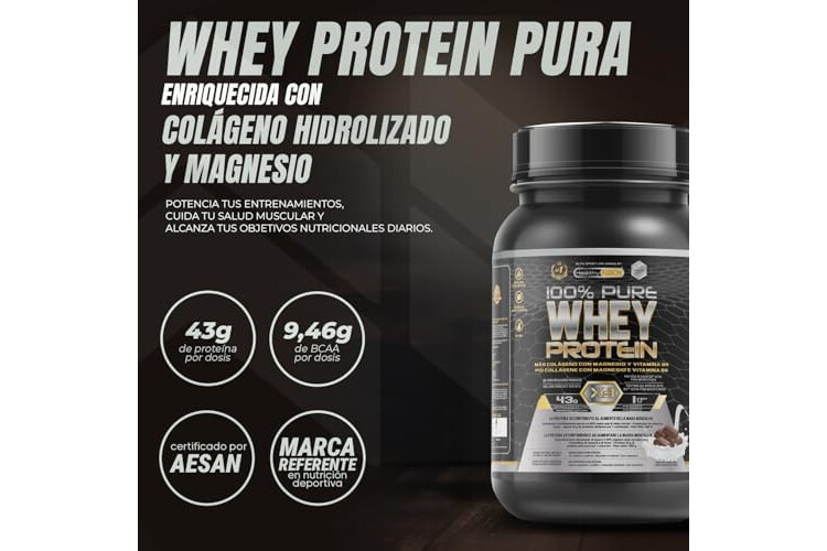 ✅ LA WHEY PROTEIN MÁS COMPLETA Y EXCLUSIVA - 100% Pure Whey Protein X3 es un producto pionero e innovador que contiene componentes activos de calidad insuperable. La proteína de suero utilizada en nuestro producto es exclusiva de nuestro laboratorio, con una pureza y asimilación como ninguna otra proteína puede ofrecer. Además, 100% Pure Whey Protein X3 es el único producto que contiene también colágeno puro y magnesio asimilado, para conseguir que la recuperación muscular sea completa.