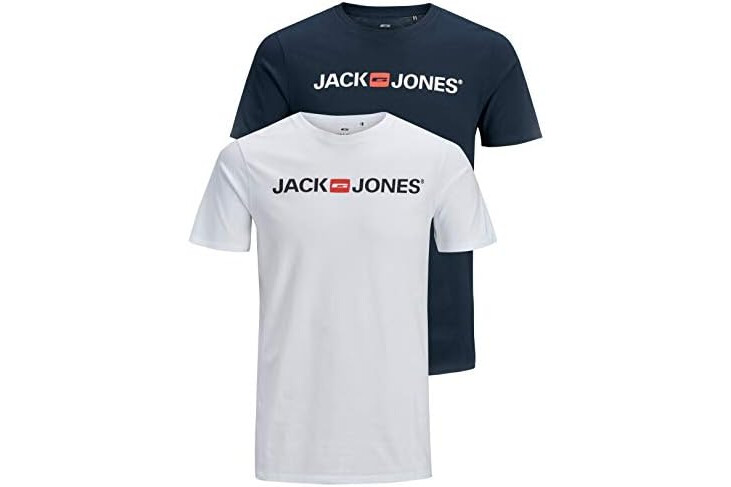 JACK & JONES Paquete de 2 Camisetas para Hombre, White/Navy Blazer, S (EU)
