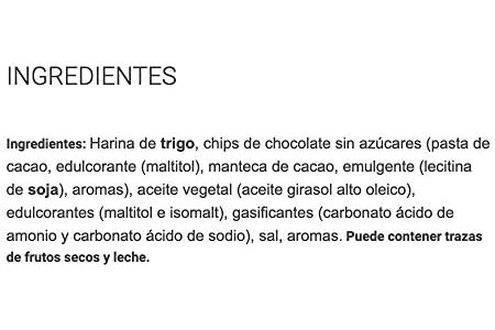 | Nombre del producto | Galleta con chips de chocolate negro sin azucares con edulcorantes |