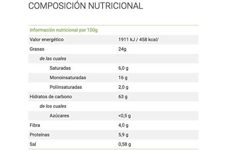 | Información sobre alérgenos | Contiene: Cereales con Gluten, Frutos Secos, Leche, Soja, Trigo |