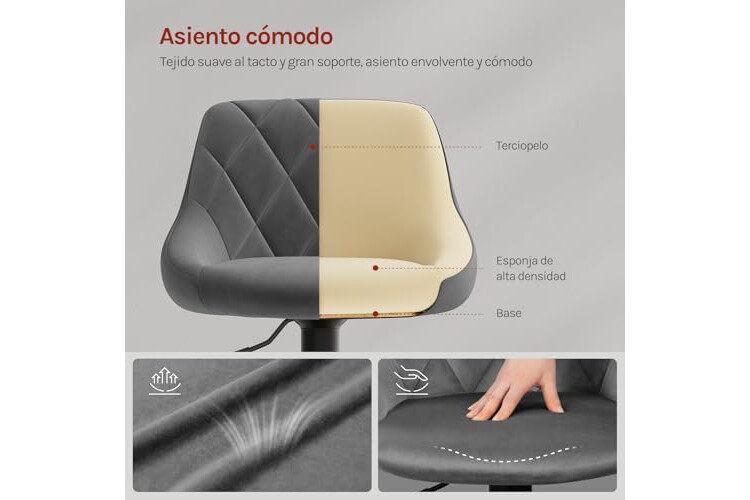 CÓMODO Y ERGONÓMICO: Considerado de los principios ergonómicos, el Taburete Giratorio de WOLTU adopta el reposapiés de metal y el asiento de terciopelo blando y confortable, a la vez está equipado con el cojín lleno de espuma elástica de alta densidad para aliviar la presión sobre la espalda y las piernas y relajar los músculos