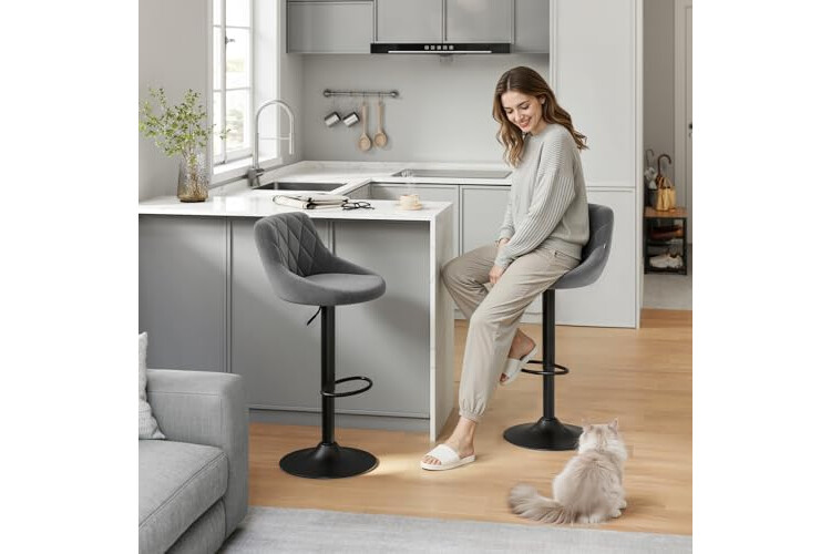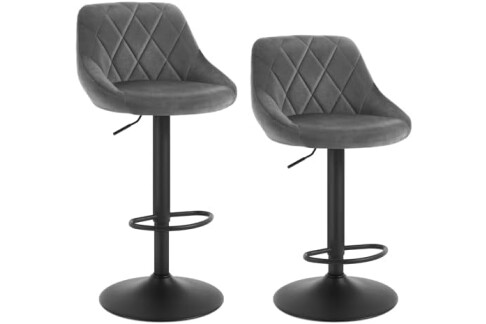 WOLTU 2X Taburete de Bar con Respaldo Terciopelo Regulable en Altura Gris Oscuro BH219dgr-2