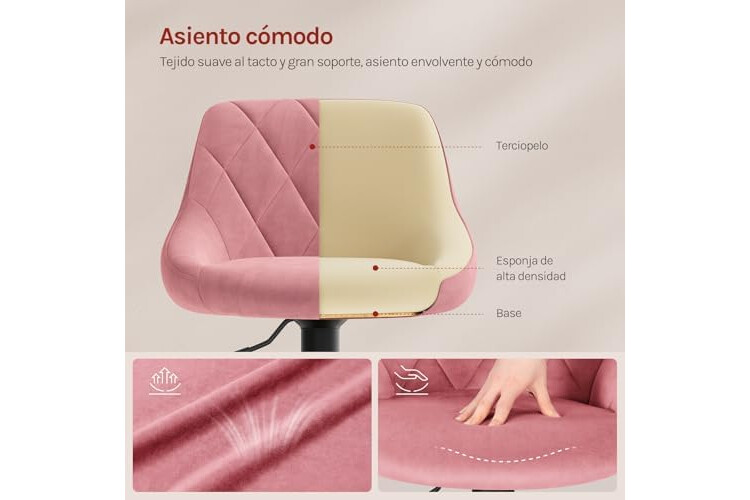 CÓMODO Y ERGONÓMICO: Considerado de los principios ergonómicos, el Taburete Giratorio de WOLTU adopta el reposapiés de metal y el asiento de terciopelo blando y confortable, a la vez está equipado con el cojín lleno de espuma elástica de alta densidad para aliviar la presión sobre la espalda y las piernas y relajar los músculos