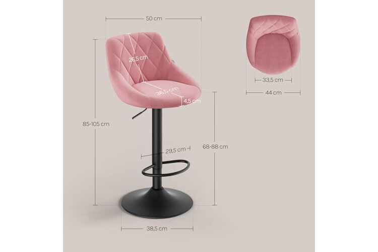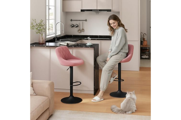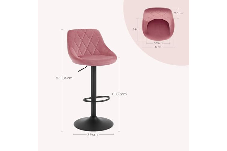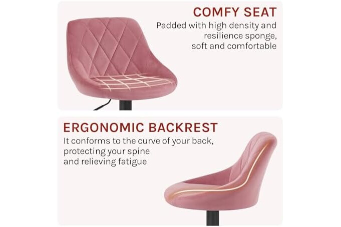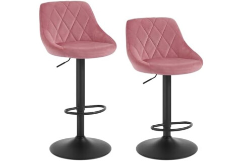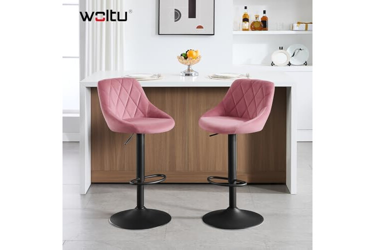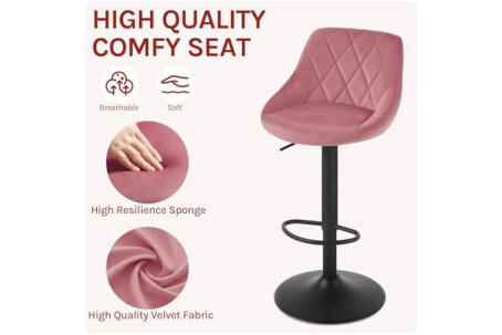WOLTU 2X Taburete de Bar con Respaldo Terciopelo Regulable en Altura Rosa BH219rs-2