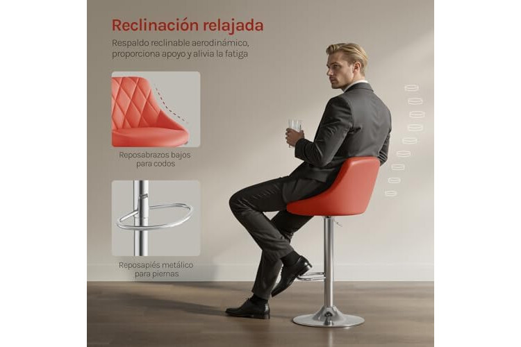 ROBUSTO Y DURABLE: El TaburetesAlto de Cocina se compone de la estructura cromada de metal y una funda de asiento de cuero sintético, con las características antioxidante, resistente al desgarro, al desgaste. Tiene la capacidad de llevar un peso de 150 kg