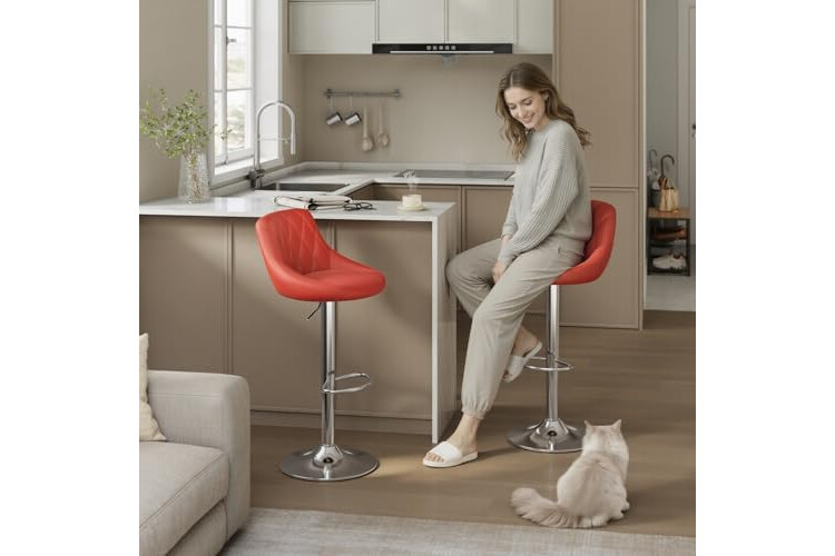 WOLTU 2X Taburete de Bar con Respaldo Cuero Sintético Taburetes Altos Cocina Regulable en Altura Rojo BH23rt-2