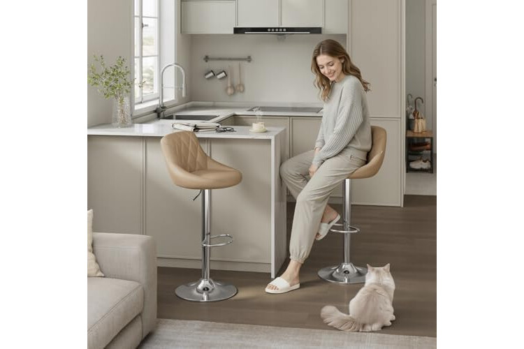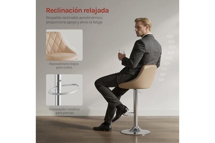 WOLTU 2X Taburete de Bar con Respaldo Cuero Sintético Taburetes Alto Cocina Regulable en Altura Caqui BH23kk-2