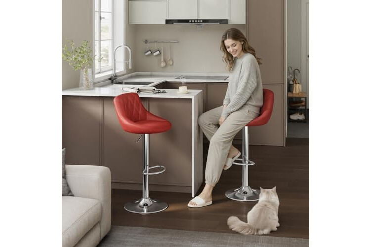 ROBUSTO Y DURABLE: El TaburetesAlto de Cocina se compone de la estructura cromada de metal y una funda de asiento de cuero sintético, con las características antioxidante, resistente al desgarro, al desgaste. Tiene la capacidad de llevar un peso de 150 kg