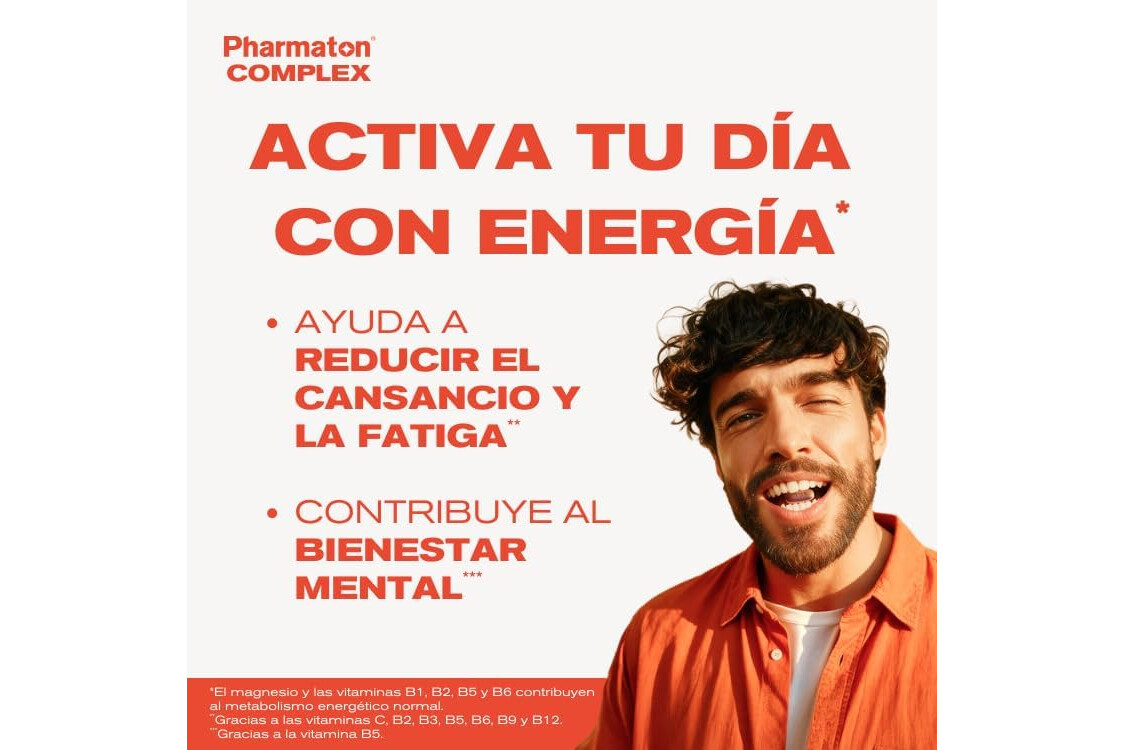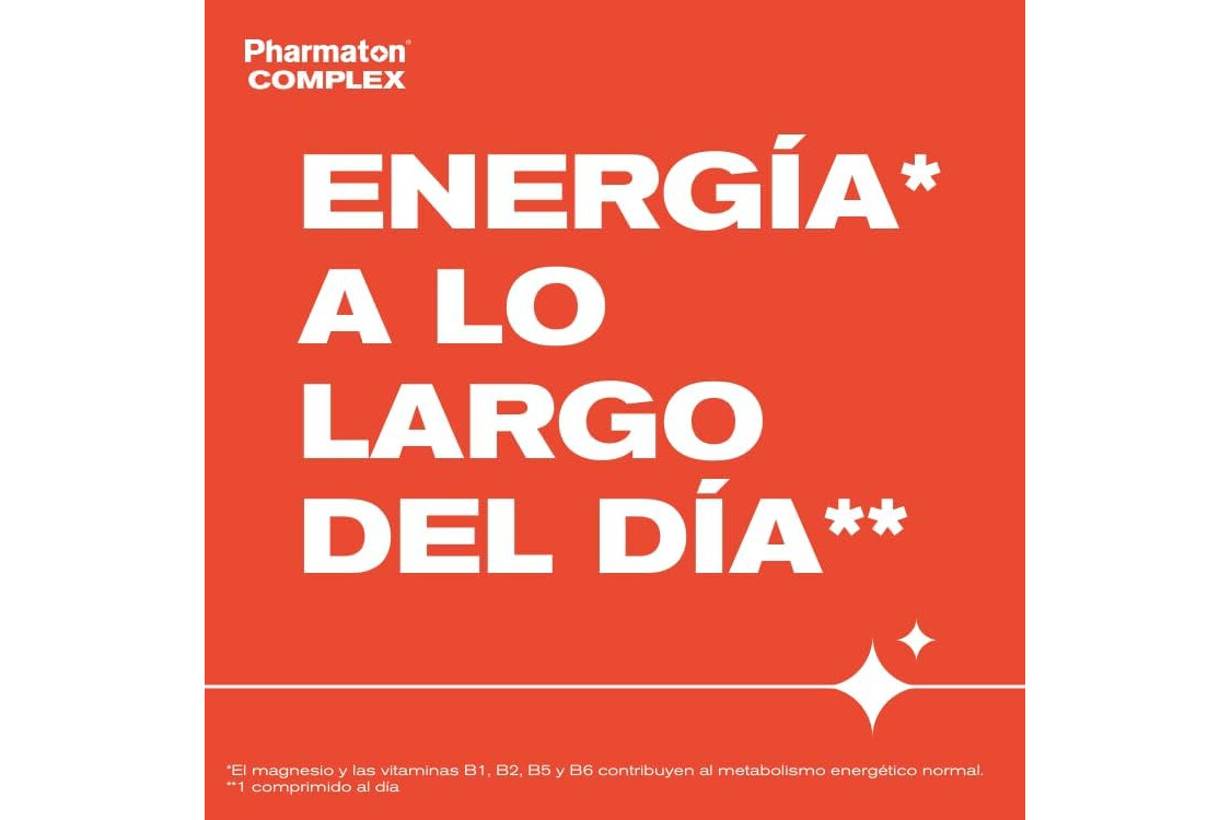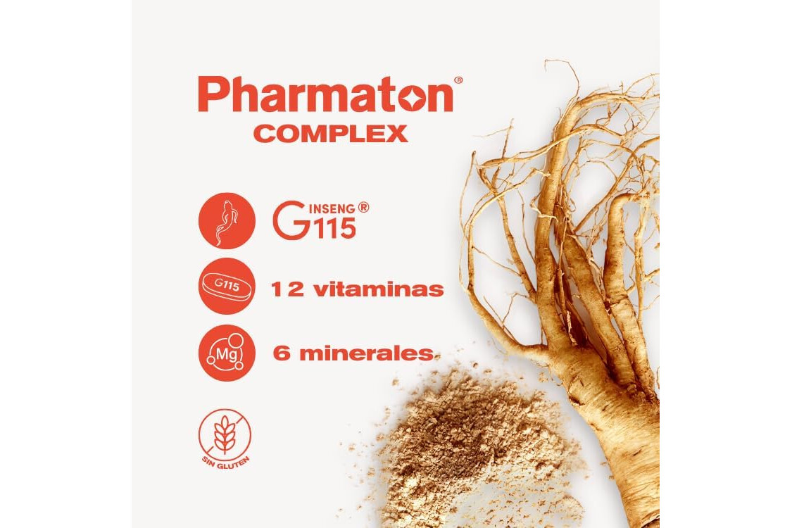 Pharmaton Complex con Ginseng G115, con vitaminas y minerales, ayuda a recuperar la energía y contribuye a mantener el bienestar físico y mental, con un solo comprimido al día
