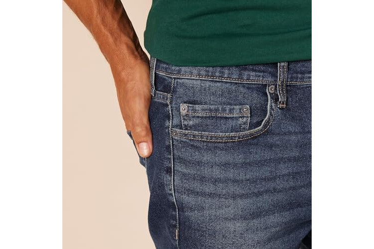 Amazon Essentials Vaqueros Ajustados - colores interrumpidos Hombre, Lavado Oscuro, 35W / 28L