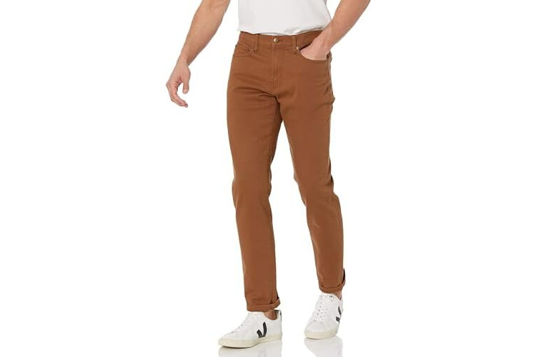 Amazon Essentials Vaqueros Ajustados - Colores interrumpidos Hombre, Marrón Caqui Oscuro, 36W / 28L