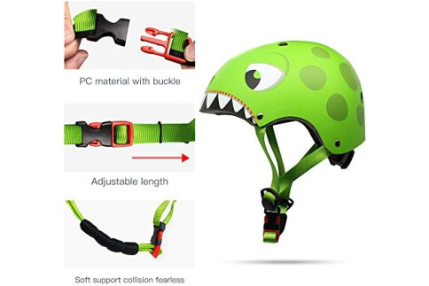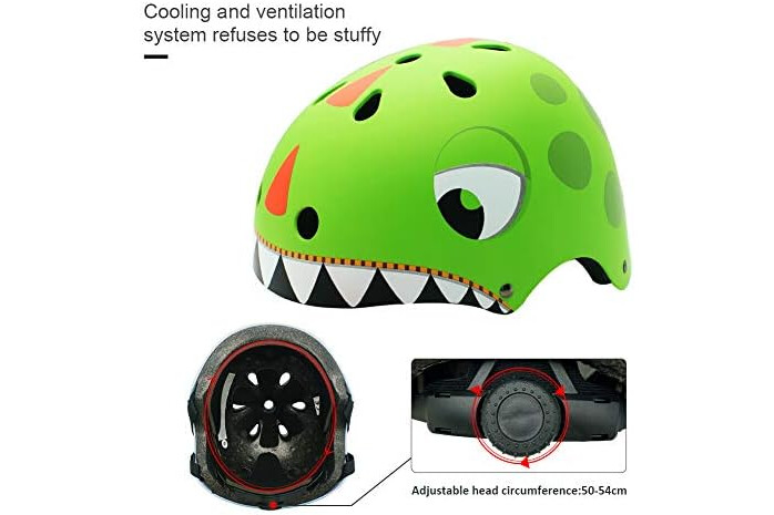 🦖AJUSTE AJUSTABLE: Tamaño: 50cm-54cm, peso: 360g. Los cascos de ciclismo ligeros para niños están equipados con correas ajustables y un dial giratorio que lo hace flexible para adaptarse perfectamente a la circunferencia de la cabeza de su hijo.