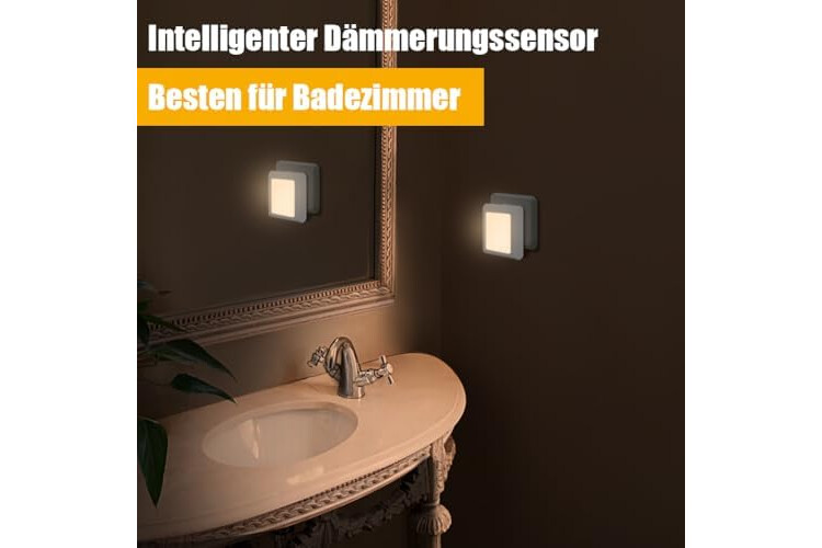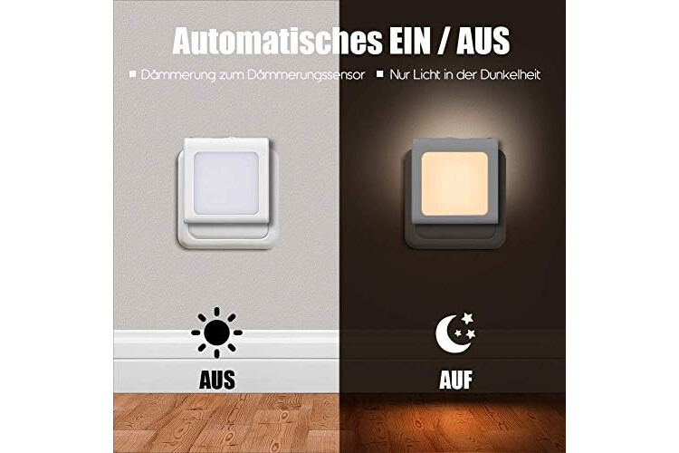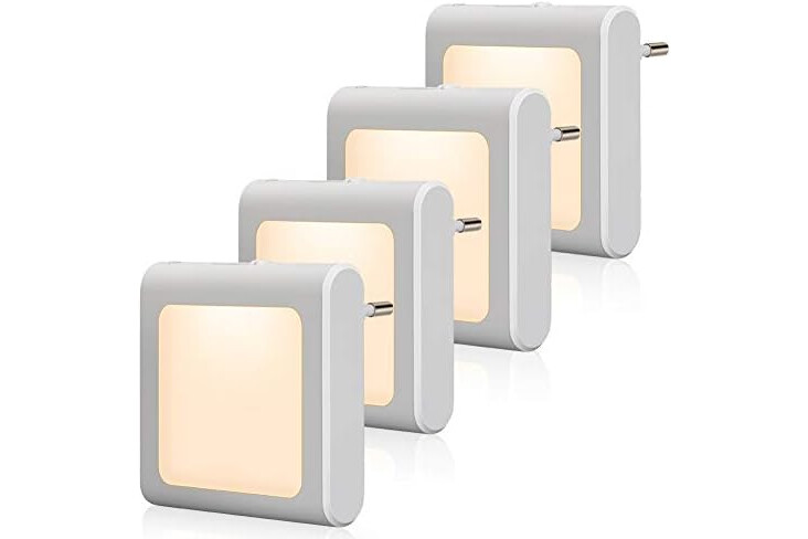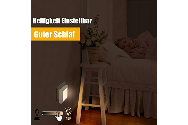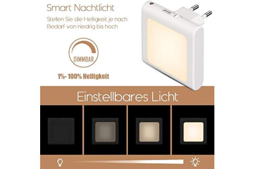 Emotionlite Enchufe con luz nocturna con sensor crepuscular, 4 unidades, Brillo ajustable, muy bueno para habitación de los niños, escaleras, dormitorio, cocina, luz de orientación, blanco cálido
