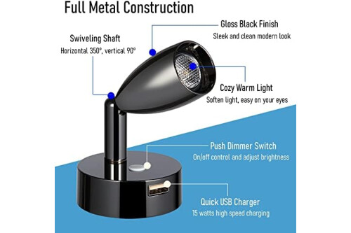 Cargador USB rápido - Base de lámpara equipada con cargador rápido USB salida máxima 15W, proporcionar carga de alta velocidad durante todo su viaje