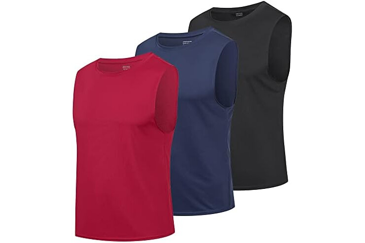 HUAKANG Paquete de 3 Camiseta Tirantes para Hombre Secado rápido Gimnasio Ropa Deportiva Camiseta sin Mangas para Entrenamiento Running (513-Black Navy Red-S)