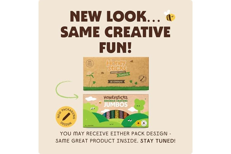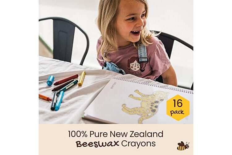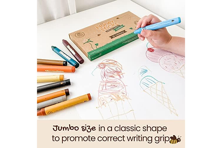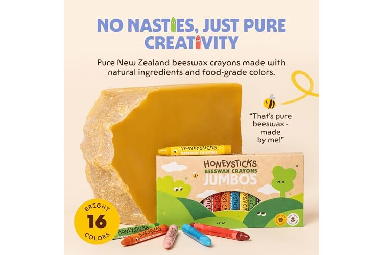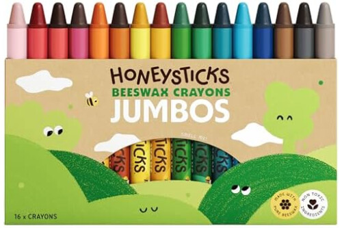 Honeysticks Ceras de Colores Jumbo de 100% Pura Cera de Abeja Natural – 16 Lápices de Cera de Grado Alimentario, Sostenibles, No Tóxicos, Hechos en Nueva Zelanda – Crayones Fáciles de Sujetar y Usar