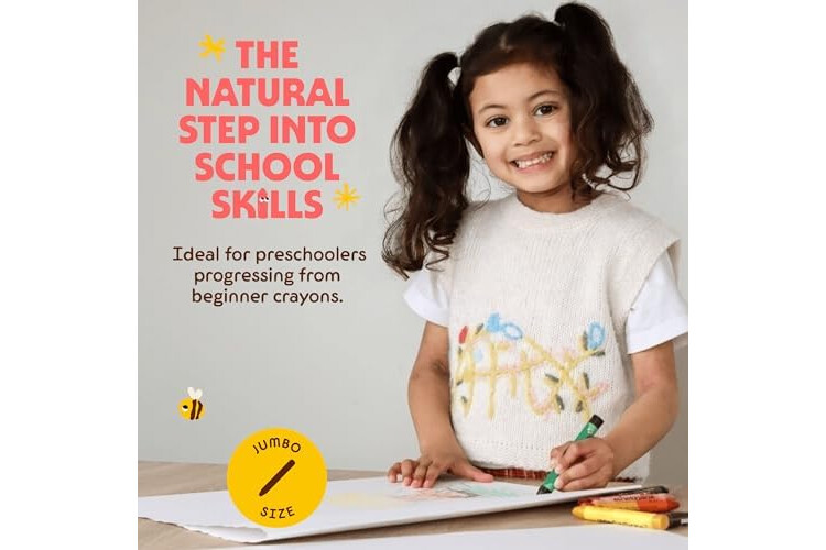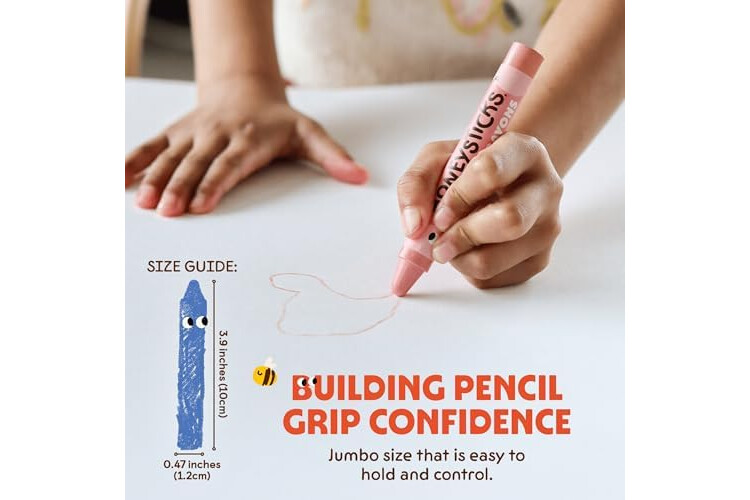 PINTURAS DE CERA TAMAÑO JUMBO FÁCIL DE AGARRAR: Cada pintura jumbo mide 10 cm de largo y 1 cm de grueso, lo que las hace fáciles de sostener y usar. La forma clásica de nuestras ceras gordas de colores para niños les ayuda a desarrollar su agarre del lápiz.