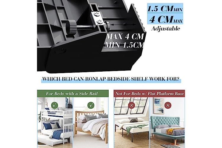Gran reemplazo para mesitas de noche: con esta práctica mesita de noche, tu iPad, teléfono móvil, libros, despertador, bebidas u otras cosas que puedas llevar a la cama a solo un brazo de distancia. Este estante de mesita de noche puede proporcionar una mesita de noche o escritorio instantáneo mientras ahorra espacio