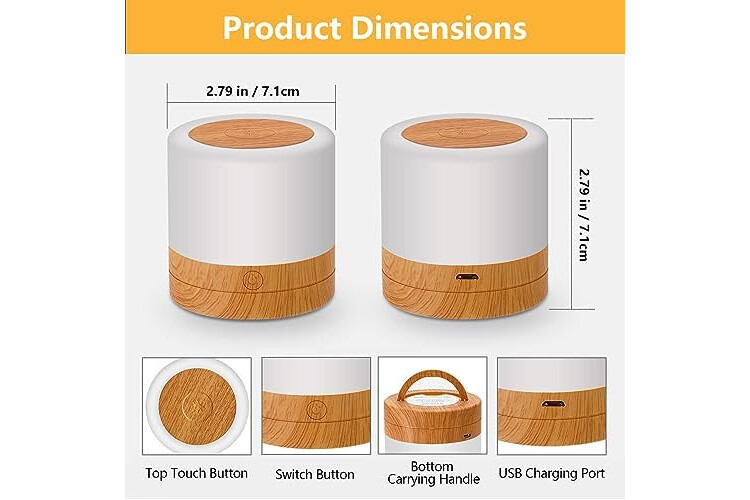Activado por tacto y control remoto: enciende y apaga fácilmente la luz tocando 3 segundos en la parte superior, simplemente toca la parte superior o utiliza el control remoto para cambiar el color, los modos de luz o los niveles de brillo; descansa tranquilo con esta lámpara de noche que no tiene cable del que hablar para que tu bebé no tropiece accidentalmente con ella. La luz nocturna es del tamaño perfecto para niños. Tamaño del producto: 7 x 7 x 7 cm