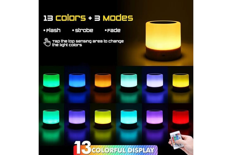 Iluminación de 360° de brillo ajustable: la lámpara táctil proporciona 5 niveles de brillo, 13 colores y 3 modos (flash, estroboscópico, desvanecimiento). Simplemente toca el panel de cont...