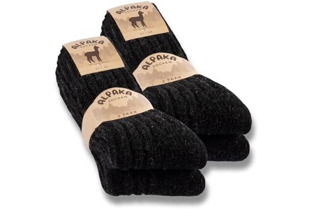 sockenkauf24 4 Pares Calcetines Lana Alpaca Hombre Mujer Calcetines Cálidos Invierno 20900 (Negro 35-38)
