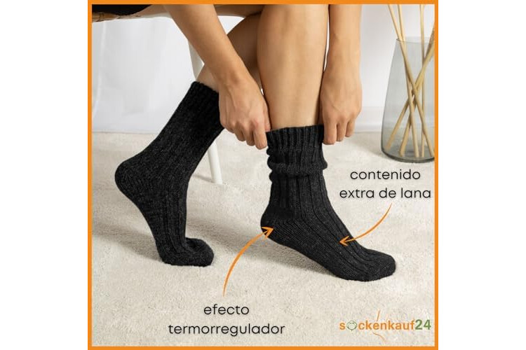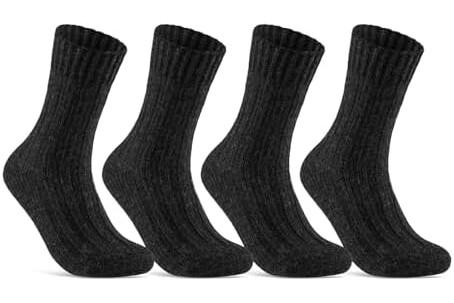 sockenkauf24 4 Pares Calcetines Lana Alpaca Hombre Mujer Calcetines Cálidos Invierno 20900 (Negro 43-46)
