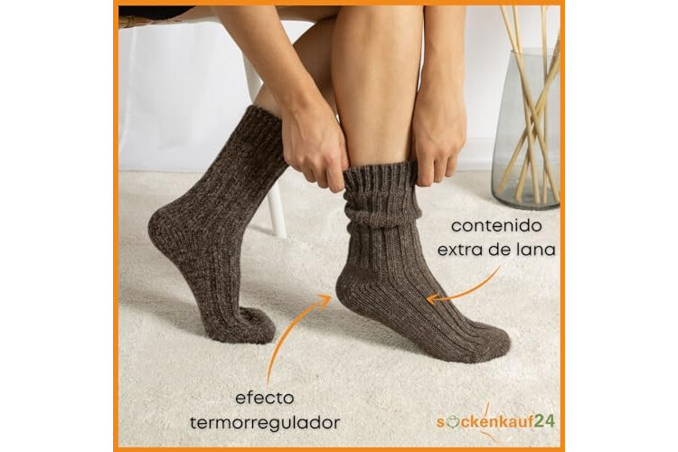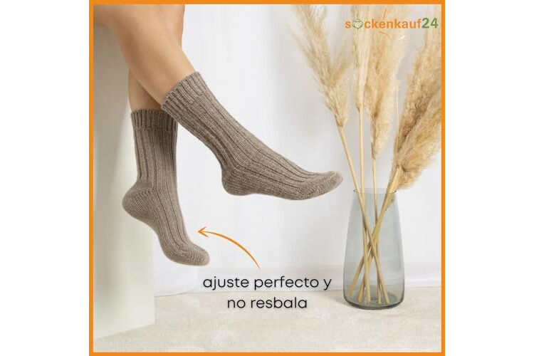sockenkauf24 4 Pares Calcetines Lana Alpaca Hombre Mujer Calcetines Cálidos Invierno 20900 (Beige Marrón 43-46)