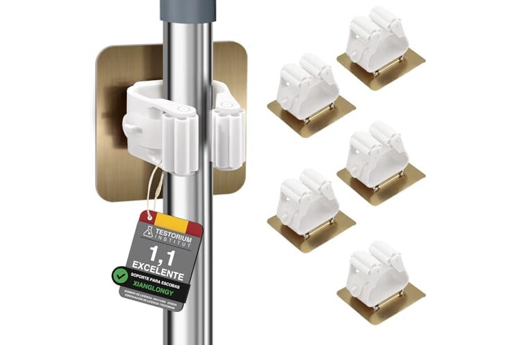 XIANGLONGY Soporte Escobas Pared, Colgador Escoba y Fregonas Sin Perforar, Adhesivos Ganchos para Colgar Escobas, Organizador Soporte de Escobas para Baño Cocina Comedor Garaje (6 Piezas)