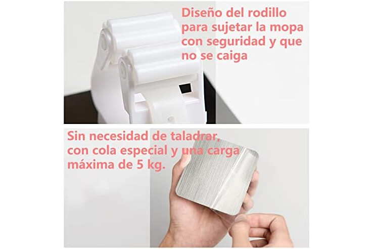 👍【Material de calidad】El cuelga escobas pared está hecho de material ABS respetuoso con el medio ambiente, que es resistente al agua y a la humedad, no envejece fácilmente, es fácil de limpiar y se puede utilizar durante largos períodos de tiempo, permitiendo una carga máxima de 5 kg. Utiliza un adhesivo fuerte que no deja marcas, no necesita taladrar, no daña las paredes.