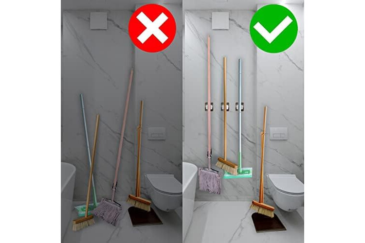 👍【Ahorro de espacio】Este ganchos escoba pared le ayuda a almacenar y organizar fácilmente sus utensilios de limpieza para decorar la habitación y ganar más espacio, diga adiós a las escenas desordenadas y mantenga su hogar limpio y ordenado.