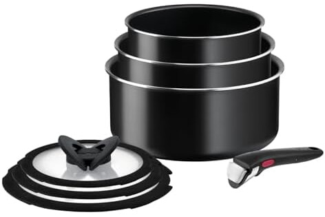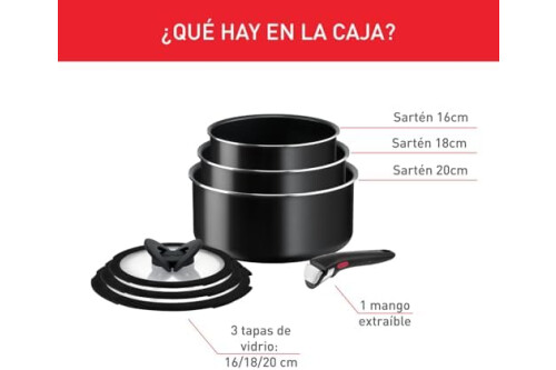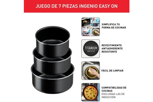 Tefal Ingenio Easy On - Juego de 3 Cazos 16/18/20 cm + 3 Tapas + Mango extraíble, No apto inducción, antiadherentes, revestimiento titanio, apto lavavajillas y horno