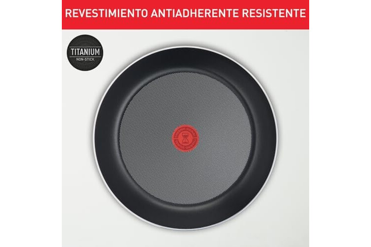 REVESTIMIENTO TITANIO 6X ANTIRRAYADURAS: Revestimiento antiadherente de alto rendimiento reforzado con cristal ultraduro que dura hasta 6 veces más que el estándar de Tefal, ideal para un uso intensivo y una limpieza sencilla.