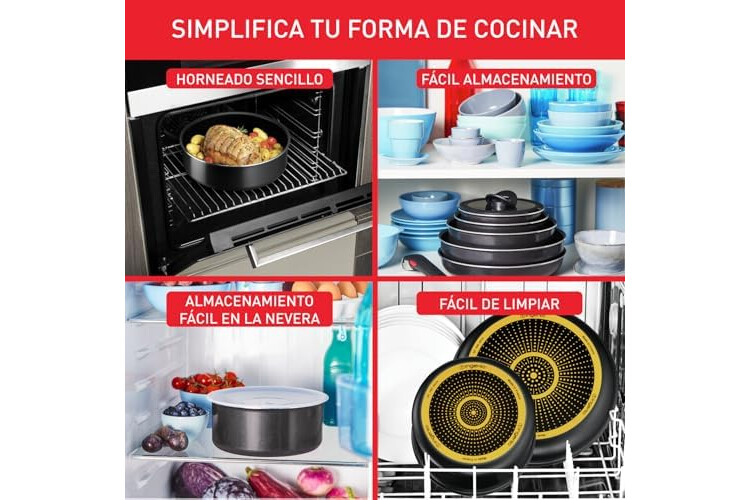 AHORRO DE ESPACIO: El diseño apilable de las sartenes y cazos permite un almacenamiento compacto, ayudándote a optimizar el espacio y a mantener tu cocina ordenada en armarios, cajones o estanterías.