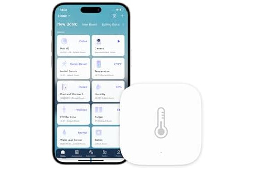 [Monitoreo ambiental 3 en 1]: monitoree fácilmente el entorno de su hogar con la funcionalidad 3 en 1 del sensor Aqara. Mide con precisión la temperatura, la humedad y la presión atmosférica, permitiéndote mantenerte informado sobre tus condiciones de vida. Todos los datos se rastrean en tiempo real y se muestran en la aplicación Aqara, lo que le permite visualizar tendencias y realizar ajustes para un ambiente hogareño más saludable y cómodo.