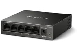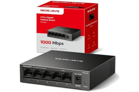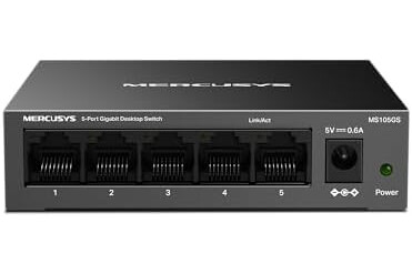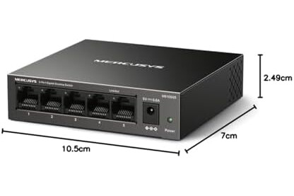 Mercusys MS105GS - Switch Gigabit Ethernet de 5 Puertos RJ45, Carcasa Metálica Resistente, Plug & Play, Sin Configuración, Bajo Consumo, Silencioso, Hub Ethernet, Ideal para Hogar, Oficina y Smart TV