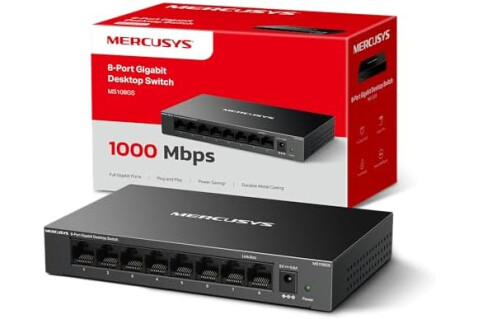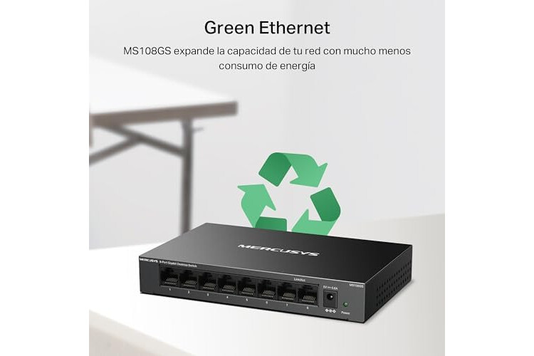 Mercusys MS108GS - Switch Gigabit de 8 Puertos, Caja de Metal Duradero, Conectar y Usar, Ahorro de Energía