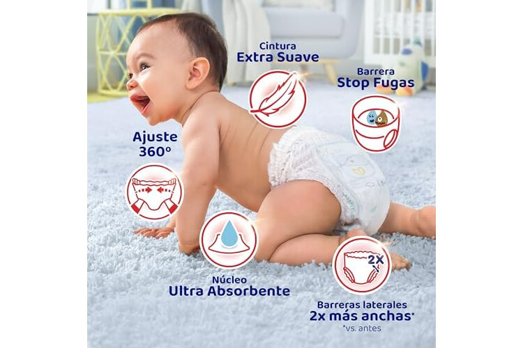 • Ajuste 360º: se adapta perfectamente al cuerpo de tu bebé para ayudar a prevenir holguras y fugas