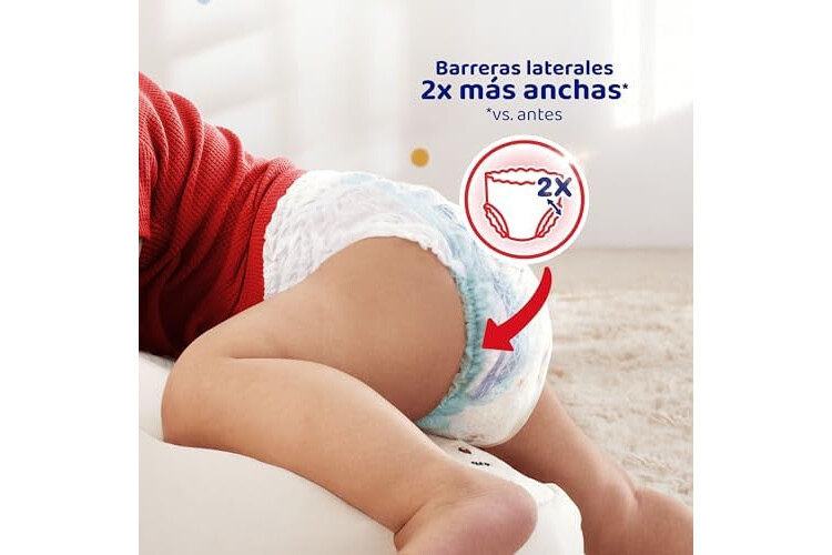 • Capa Ultra Absorbente que absorbe el pipí al instante ofreciendo hasta 12 horas de sequedad
