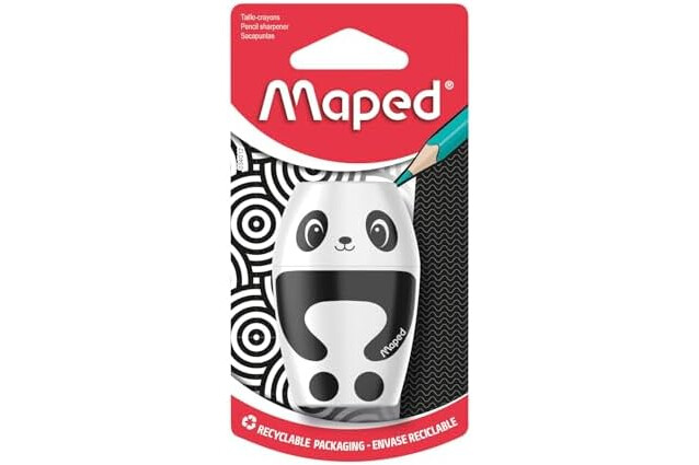 Maped - Material Escolar - Sacapuntas Shakky - Sacapuntas con Depósito - Tiene 1 Orificio para Afilar - Gran Capacidad de Reserva - Diseño Lúdico de Panda