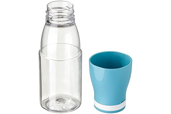 Diseño práctico y funcional – Esta botella de agua de 650 ml (6,7 × 6,7 × 25 cm) cuenta con tapa vaso para beber el contenido sin necesidad de recipientes extra y una banda elástica que facilita su transporte o sujeción a mochilas y bolsos.