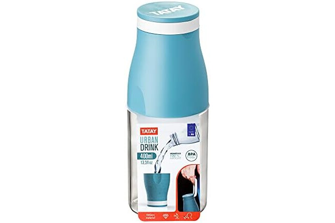Tatay Botella Agua 650 ml Urban Drink | Tapa Vaso con Banda Elástica | Hermética y Resistente | Tritán Libre de BPA | Apta para Lavavajillas, Microondas, Nevera, Congelador | 6,7x6,7x25 cm, Azul