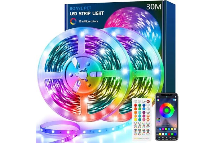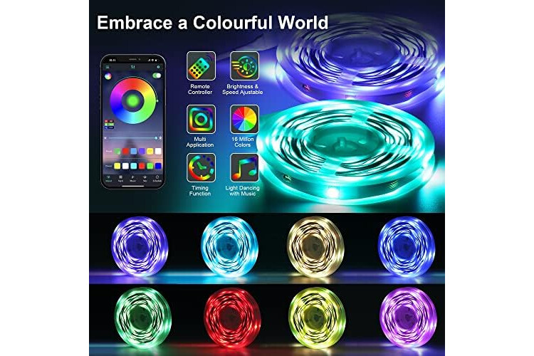 | Otras características | Tiras de luces led Longitud de 30m(2*15m), controlada por App y Mando de 40 botones, tiras led con función personal, luces led |